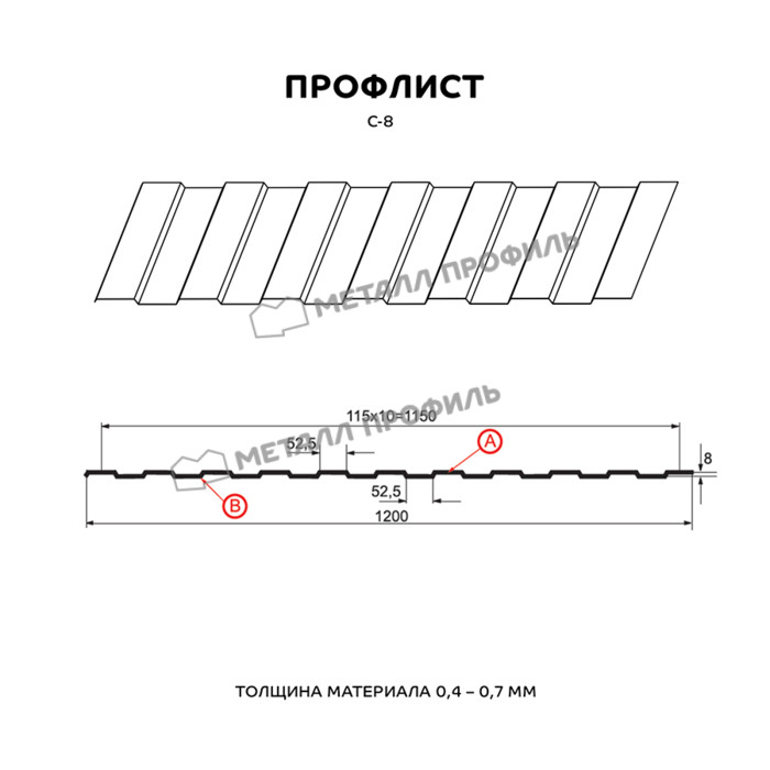 Профлист Металл Профиль С-8 0,45 Полиэстер RAL 9003/9003 Белый | A