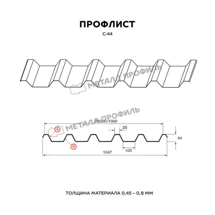 Профлист Металл-Профиль С-44 Полиэстер 0,45 RAL 7024 Серый графит | A Показать информацию